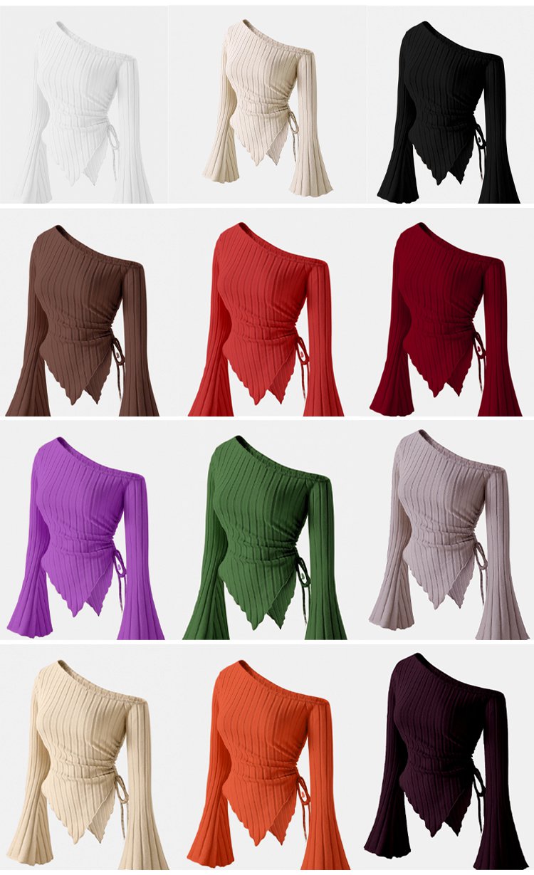 Off-shoulder T-shirt with trumpet sleeves